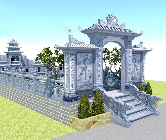 - Hạng mục trang trí: Rồng đá, lan can đá, cuốn thư, bình phong đá, tượng đá…